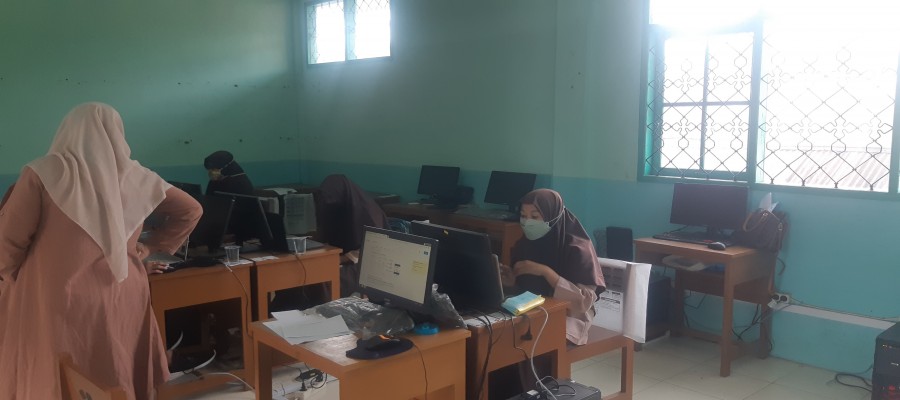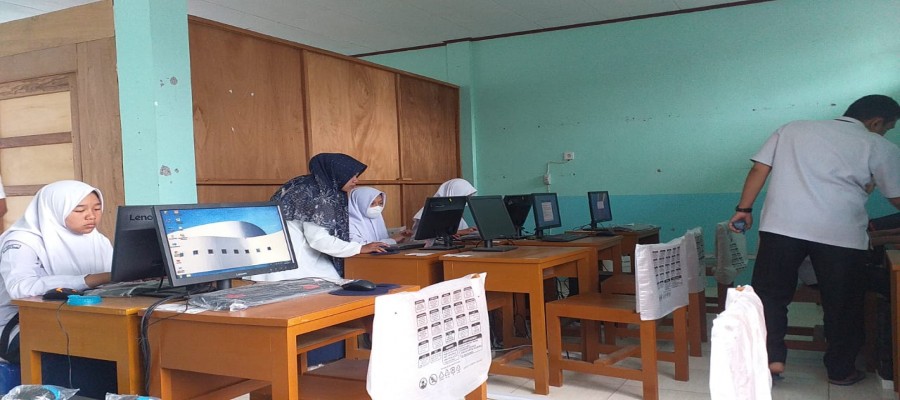Hari pertama PAS di MTsN 3 Tanah Datar dengan menggunakan CBT.